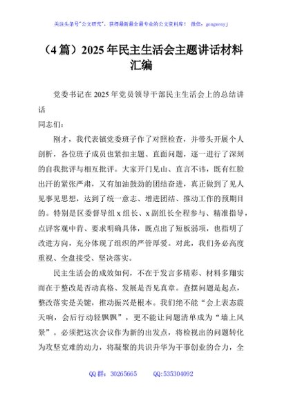 / (4篇)2025年民主生活会主题讲话材料汇编
