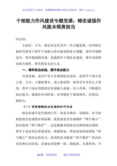 / 干部能力作风建设专题党课:铸忠诚强作风提本领勇担当