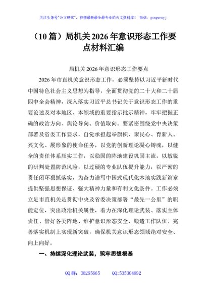 (10篇)局机关2026年意识形态工作要点材料汇编