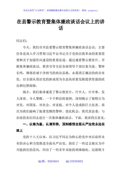 / 在县警示教育暨集体廉政谈话会议上的讲话