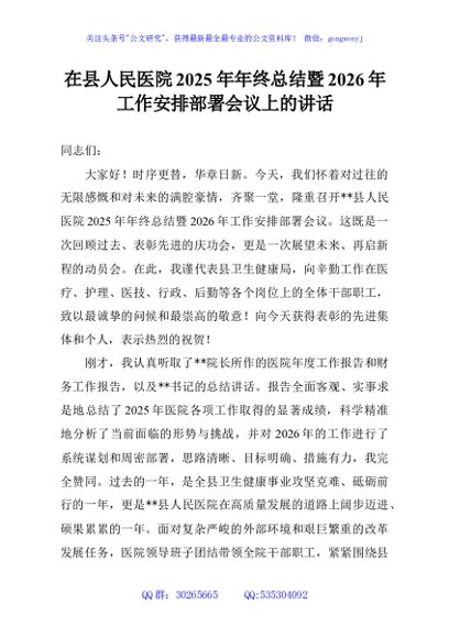 / 在县人民医院2025年年终总结暨2026年工作安排部署会议上的讲话
