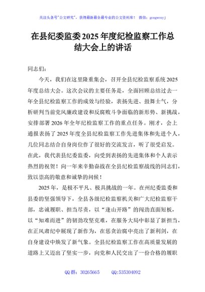 / 在县纪委监委2025年度纪检监察工作总结大会上的讲话