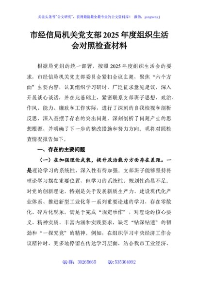市经信局机关党支部2025年度组织生活会对照检查材料