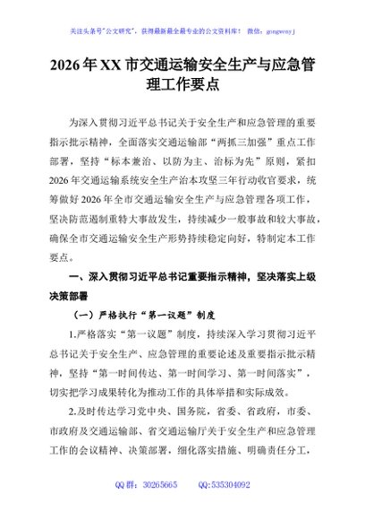 / 2026年XX市交通运输安全生产与应急管理工作要点