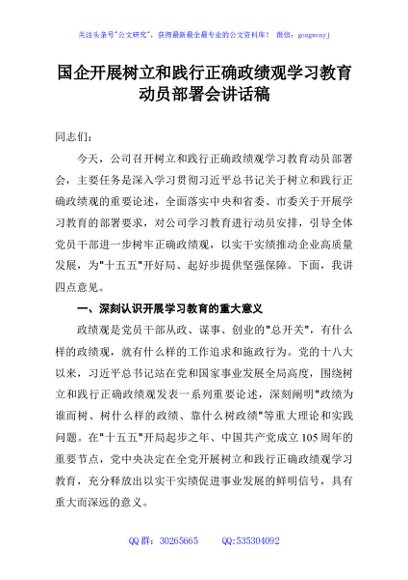 / 国企开展树立和践行正确政绩观学习教育动员部署会讲话稿