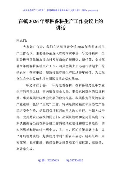 / 在镇2026年春耕备耕生产工作会议上的讲话