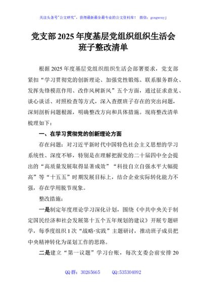 / 党支部2025年度基层党组织组织生活会班子整改清单