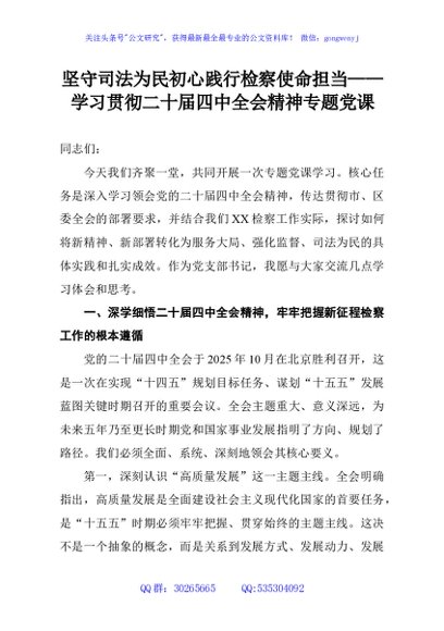 / 坚守司法为民初心践行检察使命担当——学习贯彻二十届四中全会精神专题党课