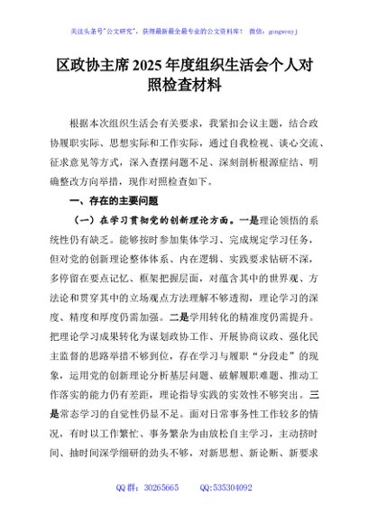 / 区政协主席2025年度组织生活会个人对照检查材料