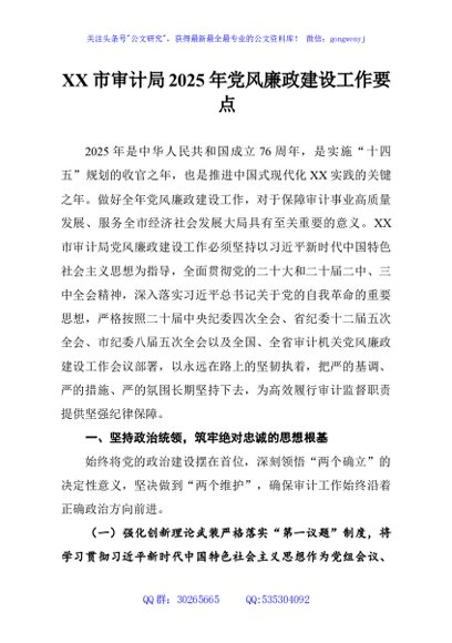 / XX市审计局2025年党风廉政建设工作要点