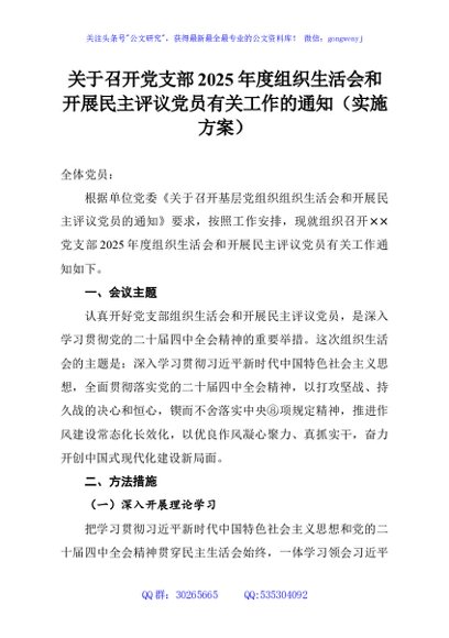 / 关于召开党支部2025年度组织生活会和开展民主评议党员有关工作的通知(实施方案)