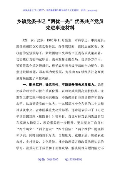 / 乡镇党委书记“两优一先”优秀共产党员先进事迹材料