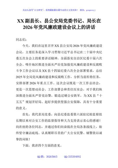 / XX副县长、县公安局党委书记、局长在2026年党风廉政建设会议上的讲话