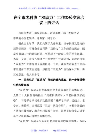 / 在全市老科协“双助力”工作经验交流会议上的讲话