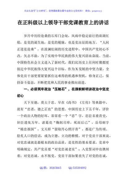 / 在正科级以上领导干部党课教育上的讲话