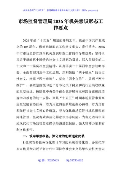 / 市场监督管理局2026年机关意识形态工作要点