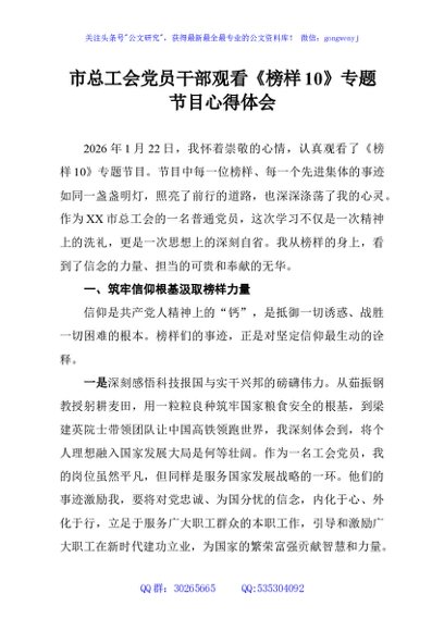/ 市总工会党员干部观看《榜样10》专题节目心得体会