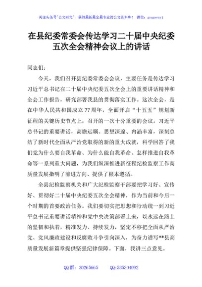 / 在县纪委常委会传达学习二十届中央纪委五次全会精神会议上的讲话