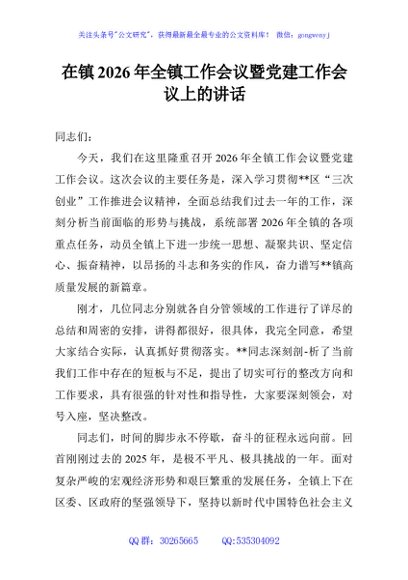/ 在镇2026年全镇工作会议暨党建工作会议上的讲话