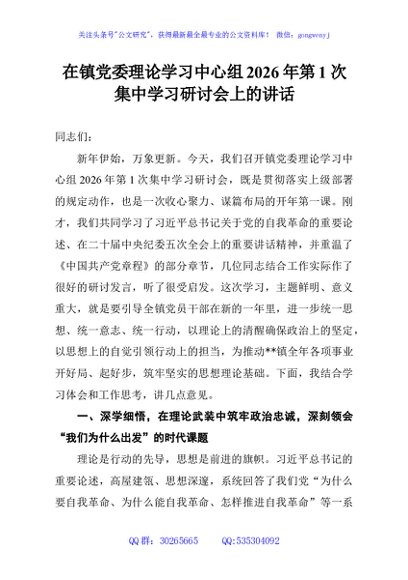 / 在镇党委理论学习中心组2026年第1次集中学习研讨会上的讲话