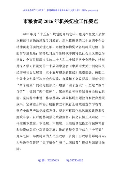 / 市粮食局2026年机关纪检工作要点