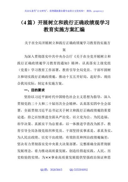 (4篇)开展树立和践行正确政绩观学习教育实施方案汇编