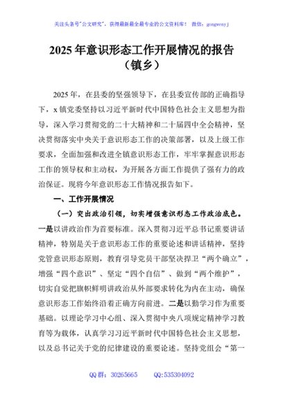 / 2025年意识形态工作开展情况的报告(镇乡)