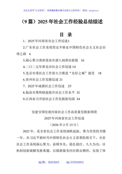/ (9篇)2025年社会工作经验总结综述