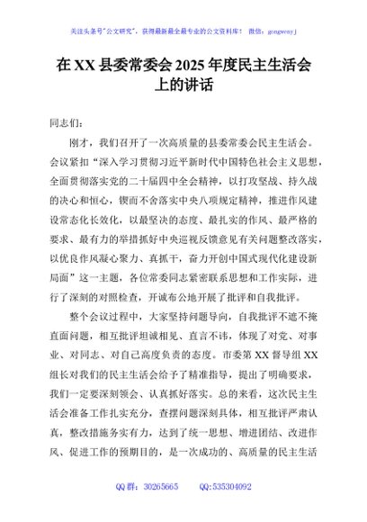 / 在XX县委常委会2025年度民主生活会上的讲话