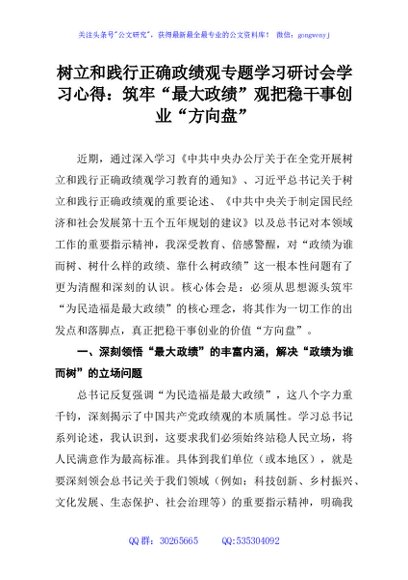 / 树立和践行正确政绩观专题学习研讨会学习心得:筑牢“最大政绩”观把稳干事创业“方向盘”