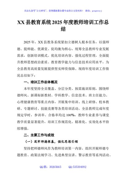 / XX县教育系统2025年度教师培训工作总结