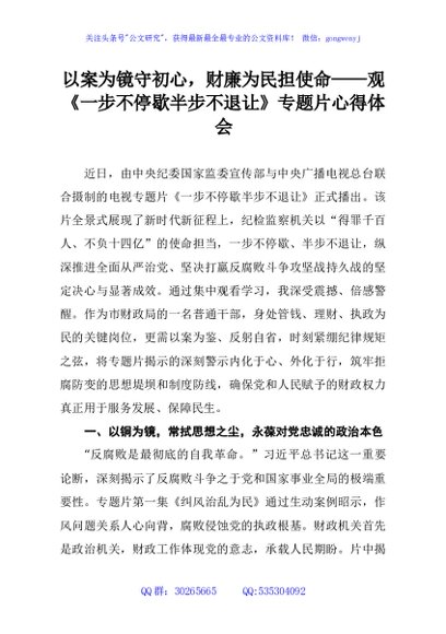 / 以案为镜守初心,财廉为民担使命——观《一步不停歇半步不退让》专题片心得体会