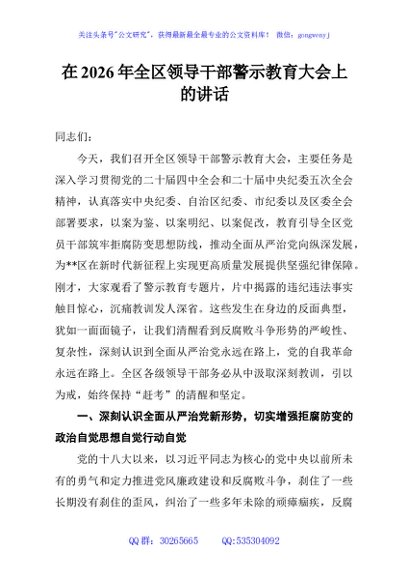 / 在2026年全区领导干部警示教育大会上的讲话