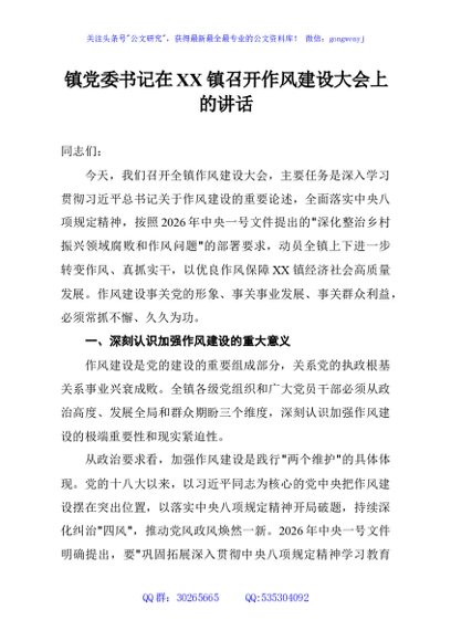 / 镇党委书记在XX镇召开作风建设大会上的讲话