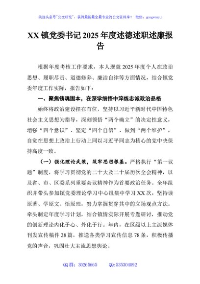 / XX镇党委书记2025年度述德述职述廉报告