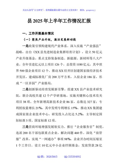 / 县2025年上半年工作情况汇报
