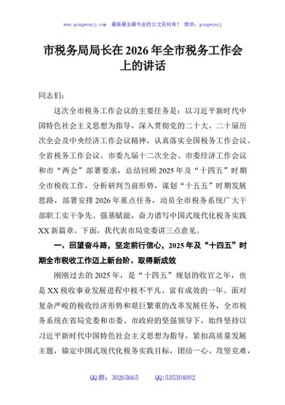 / 市税务局局长在2026年全市税务工作会上的讲话