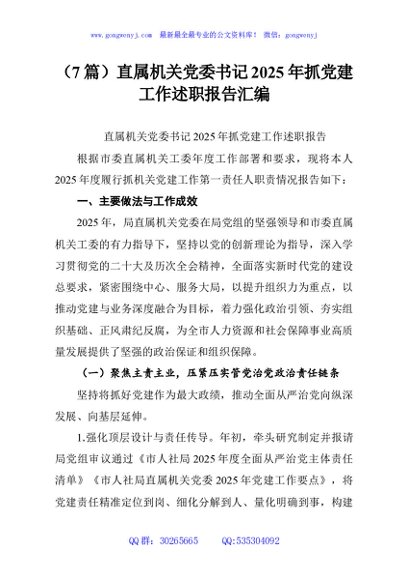 / (7篇)直属机关党委书记2025年抓党建工作述职报告汇编