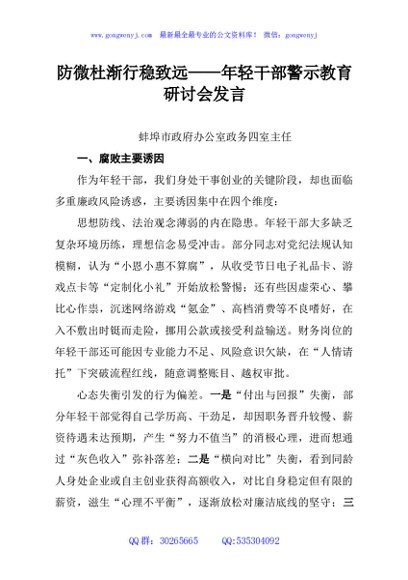 / 防微杜渐行稳致远——年轻干部警示教育研讨会发言