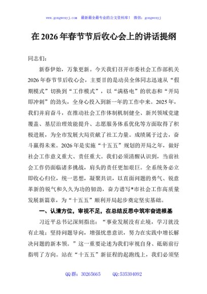 / 在2026年春节节后收心会上的讲话提纲