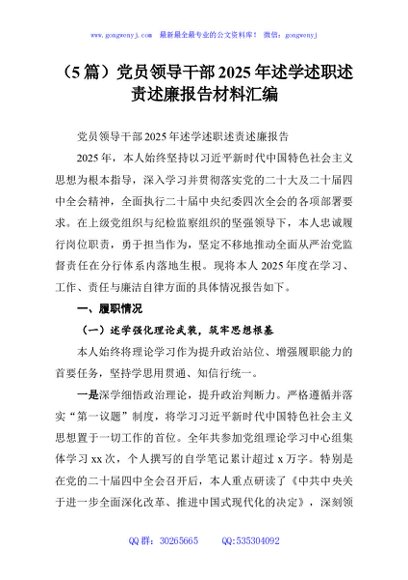 / (5篇)党员领导干部2025年述学述职述责述廉报告材料汇编