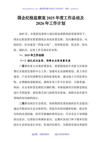 / 国企纪检监察室2025年度工作总结及2026年工作计划