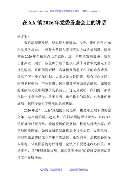 / 在XX镇2026年党委务虚会上的讲话
