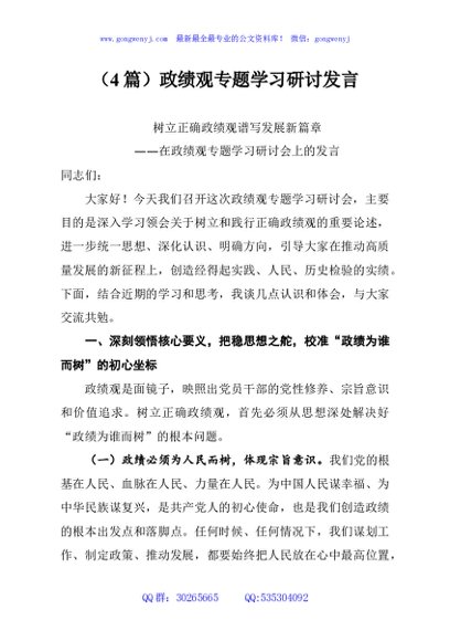 / (4篇)政绩观专题学习研讨发言