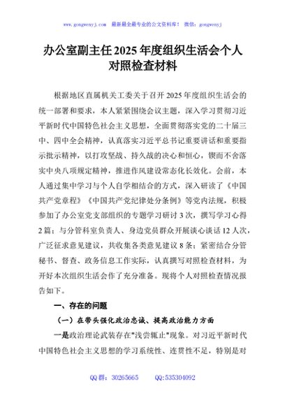 / 办公室副主任2025年度组织生活会个人对照检查材料