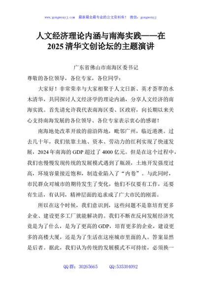 / 人文经济理论内涵与南海实践——在2025清华文创论坛的主题演讲