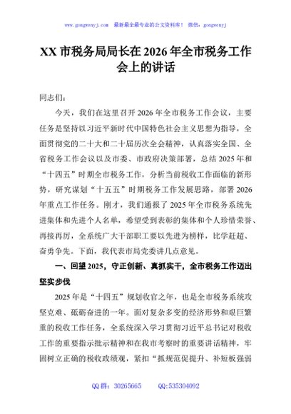 / X市税务局局长在2026年全市税务工作会上的讲话