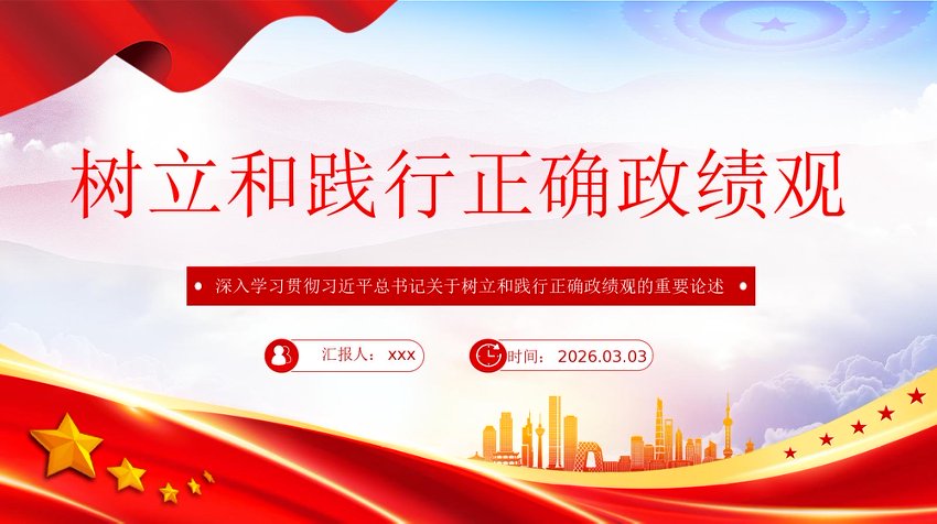/ 党课PPT课件:树立和践行正确政绩观——党员干部队伍思想教育.