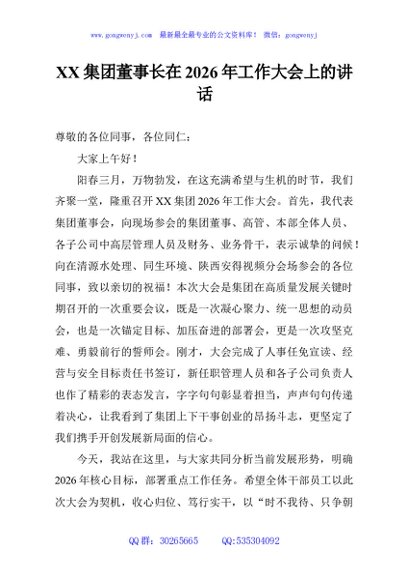 / XX集团董事长在2026年工作大会上的讲话