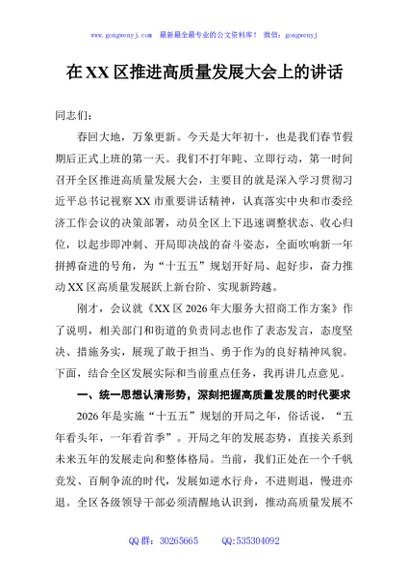 / 在XX区推进高质量发展大会上的讲话